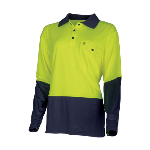 Tru Workwear Women's Recycled Anti-Microbial Micromesh L/S Two Tone Hi-Vis Polo Shirt